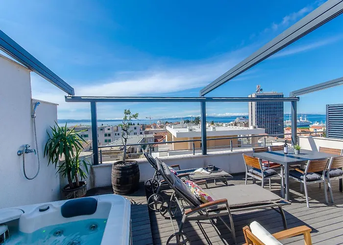 A Horvát Tengerészeti Múzeumtól csupán egy 5 perces sétára található 34 m²-es Apartment Jacuzzi Sky Split vendégei könnyen elérhetik a közelben található különböző turisztikai látványosságokat. A vendégek jakuzzit vehetnek igénybe, hogy fokozzák élményeiket.